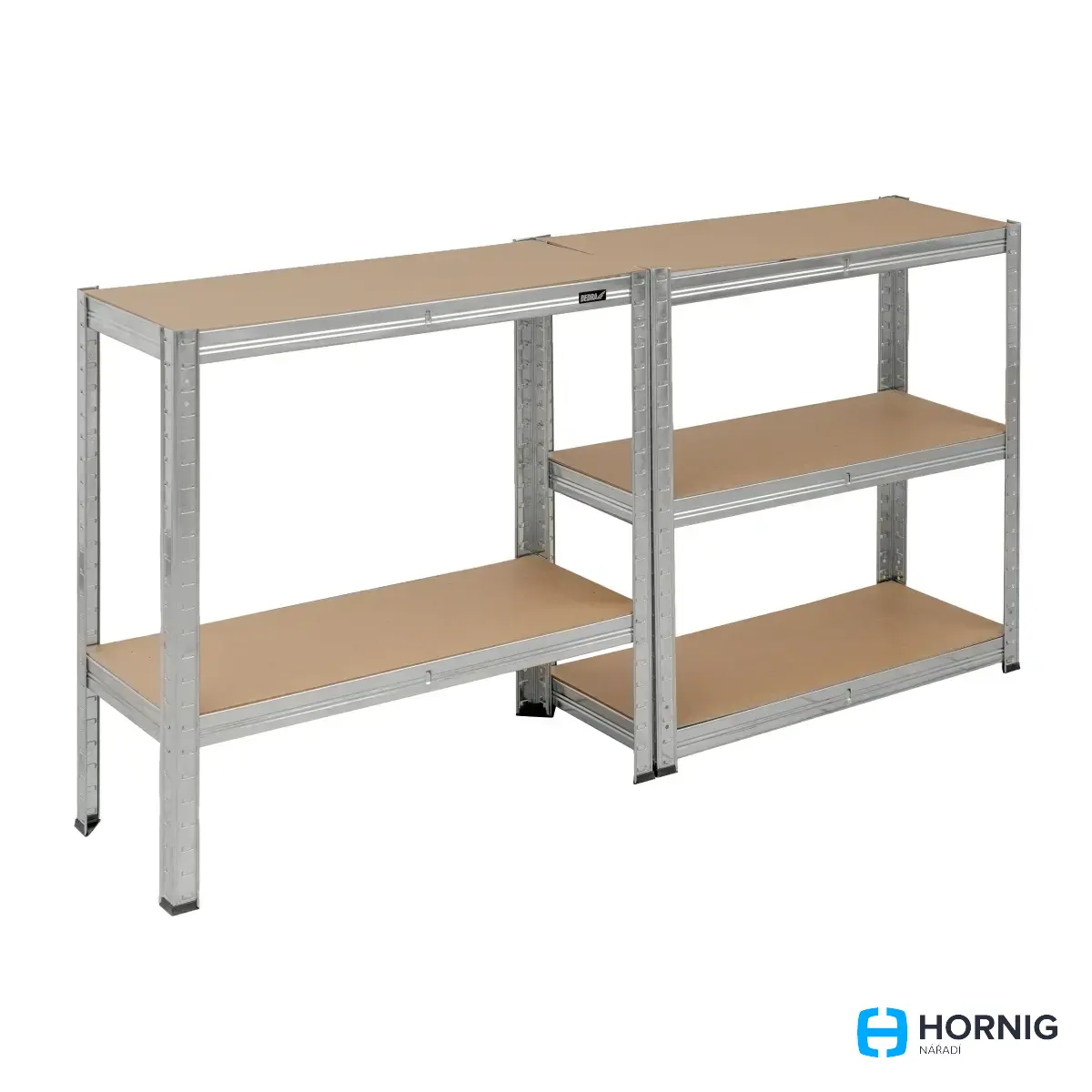 Rám regálu je vyroben z pevného kovu, který zajišťuje stabilitu a odolnost vůči mechanickému poškození. Celý rám je pokryt vrstvou zinku, která chrání před korozí a zachovává estetický vzhled po dlouhou dobu. Police z MDF poskytují spolehlivou oporu pro uložené předměty.