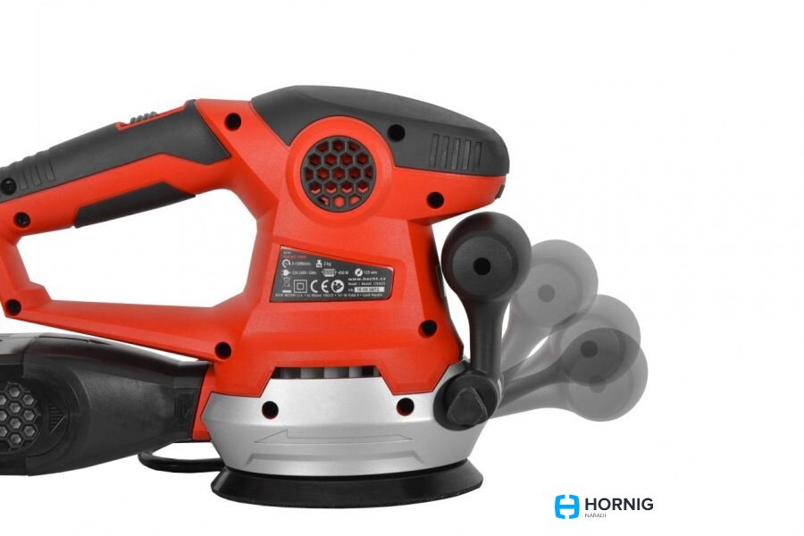 - Brusná deska se otáčí rychlostí 13 000 ot/min, přičemž vibruje 26 000 kmity za vteřinu.