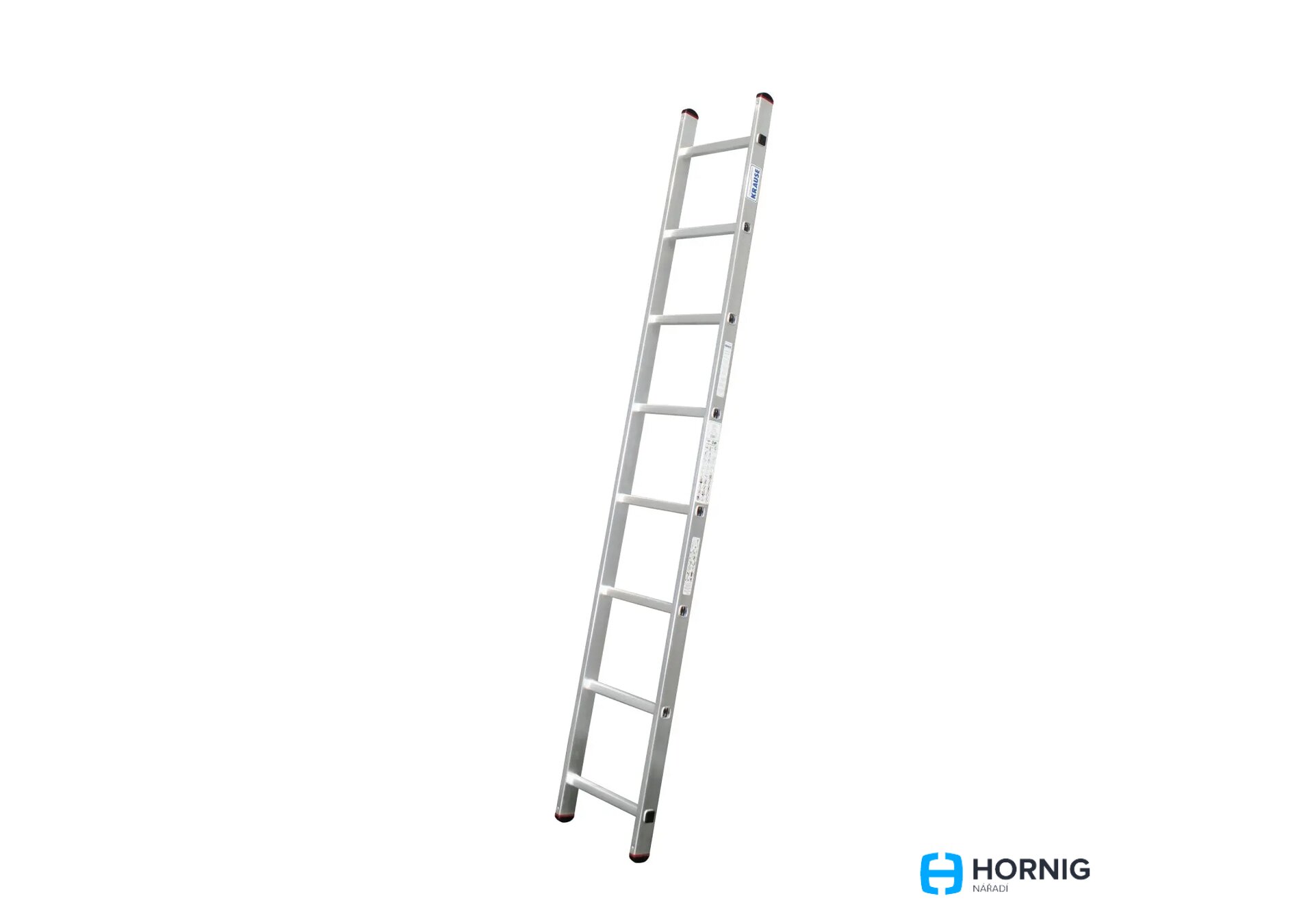 KRAUSE jednodílný hliníkový žebřík 225 cm, lehký, s protiskluzovými patkami a nosností do 150 kg.