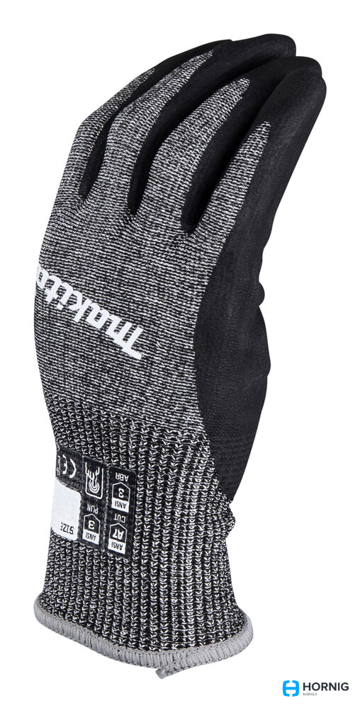 MAKITA P-84729 rukavice L/9 s nitrilovým potahem, vysokou ochranou proti prořezu a odolností vůči olejům a oděru.